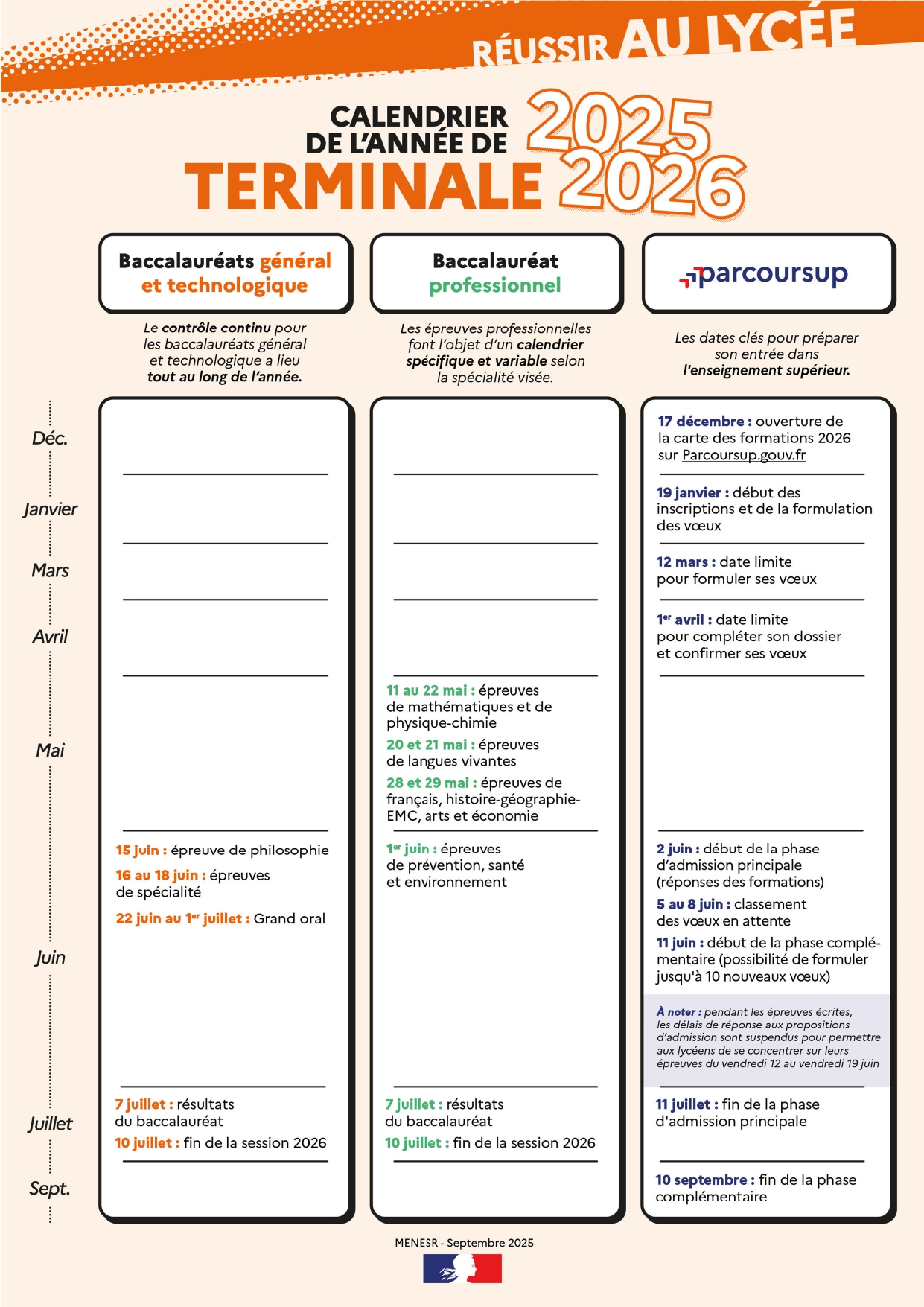 Calendrier de l’année de terminale 2025-2026